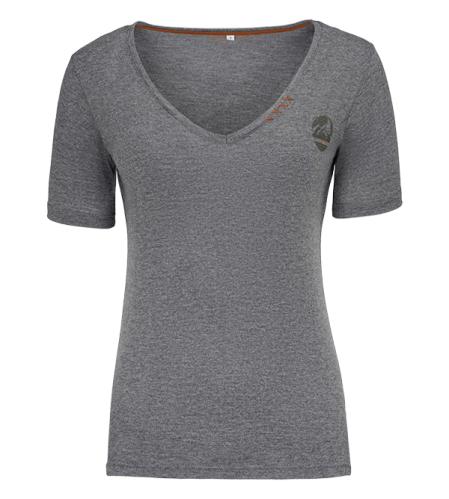 Lässiges T-Shirt in angenehmer melange Jersey Qualität mit V-Ausschnitt, kleinem Print auf Brusthöhe und Zierstick am Ausschnitt.Qualität: